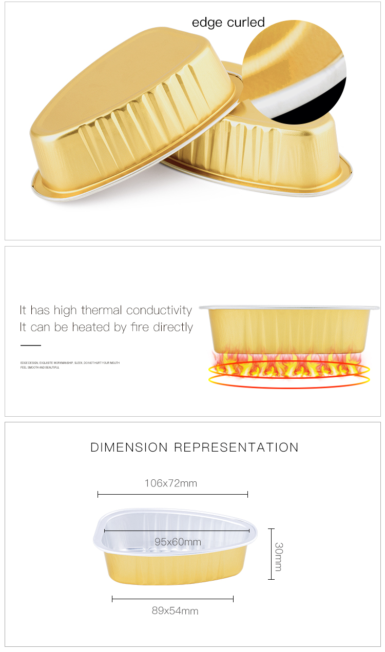 Ce conteneur en feuille d'aluminium est généralement utilisé dans la production de pudding au caramel, et sa capacité convient au pudding au caramel. Et il peut résister au feu léger, ou il peut être chauffé par le micro-ondes du four. Ainsi, plus de magasins de desserts choisiront ce conteneur en aluminium pour faire du pudding au caramel.