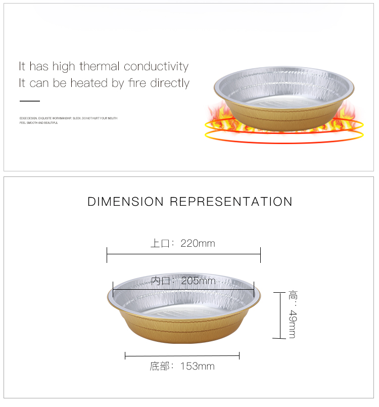 Nos boîtes en aluminium pour la nourriture ne sont pas seulement fonctionnelles mais aussi respectueuses de l'environnement. L'aluminium est un matériau recyclable, ce qui signifie qu'en choisissant ABLPACK, vous faites un choix durable qui profite à la planète. La couleur dorée donne à ces boîtes un look premium, ce qui les rend adaptés à n'importe quel cadre, des pique-niques décontractés aux événements formels. De plus, leur capacité de 1300 ml / 45,7 ox est juste pour servir des portions généreuses, qu'il s'agisse d'une portion de pâtes à la taille d'une famille, d'une salade copieuse ou d'un plat gastronomique. Faites confiance à ABLPACK pour vous fournir les meilleures solutions d'emballage alimentaire, en combinant la pratique avec une conception élégante pour améliorer votre expérience culinaire. ---