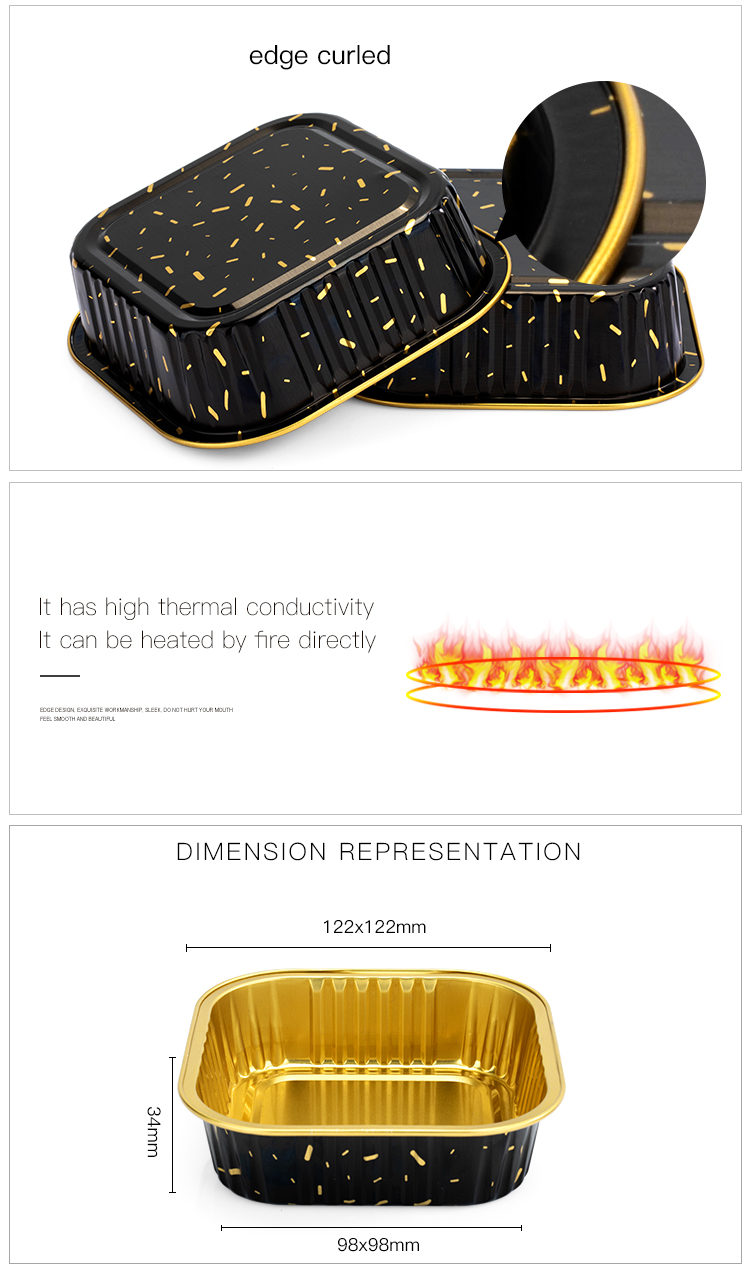 Ce récipient en papier d'aluminium est généralement utilisé dans la production de pudding au caramel et sa capacité est adaptée au pudding au caramel. Et il peut résister au feu léger, ou il peut être chauffé au four à micro-ondes. Ainsi, de plus en plus de magasins de desserts choisiront ce récipient en papier d'aluminium pour préparer du pudding au caramel.