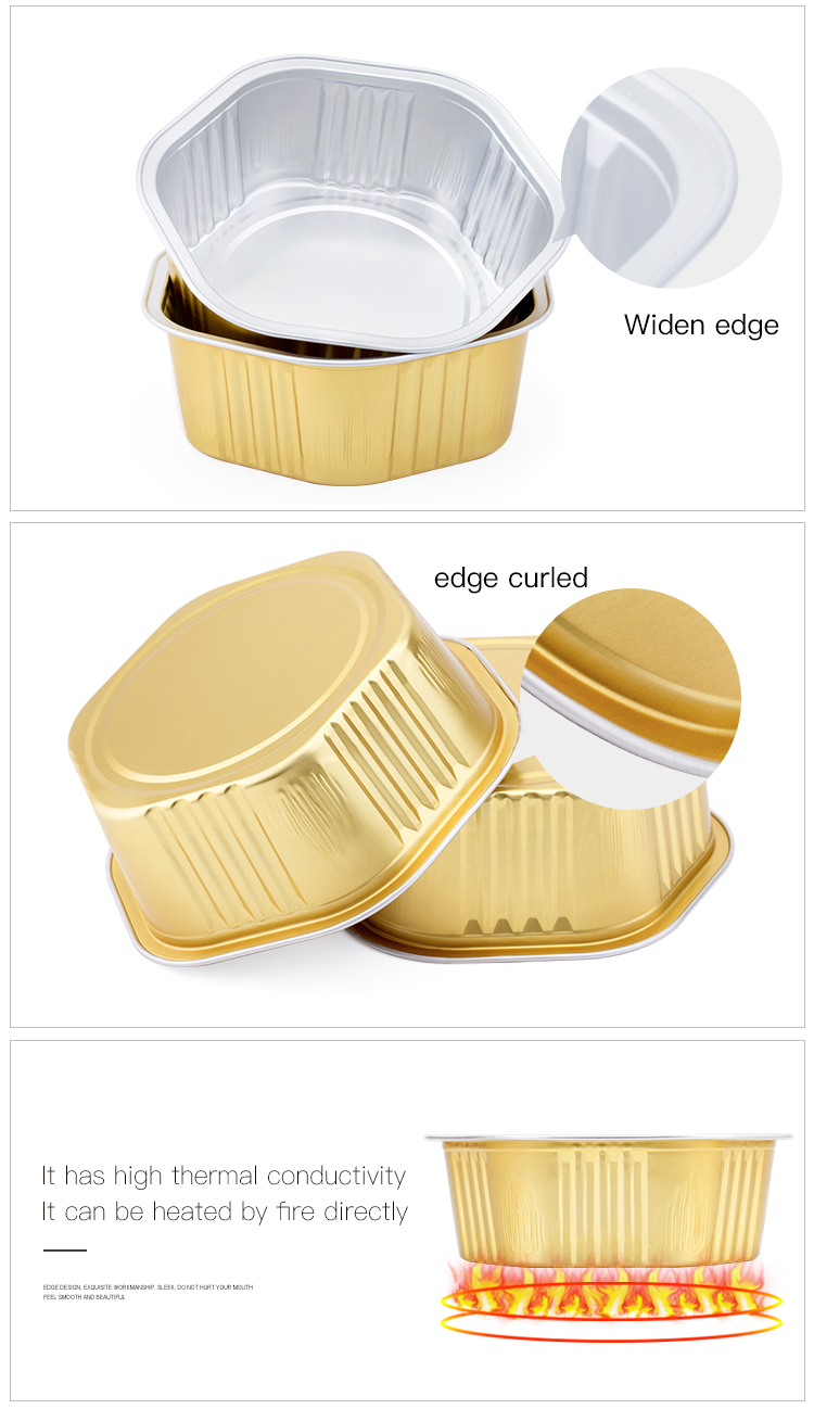 Ce récipient en papier d'aluminium est généralement utilisé dans la production de pudding au caramel et sa capacité est adaptée au pudding au caramel. Et il peut résister au feu léger, ou il peut être chauffé au four à micro-ondes. Ainsi, de plus en plus de magasins de desserts choisiront ce récipient en papier d'aluminium pour préparer du pudding au caramel.