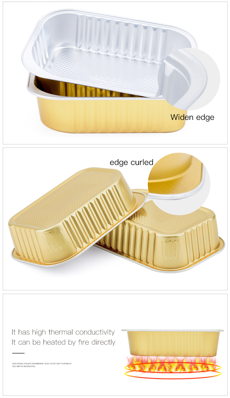Commodité : la boîte peut être directement chauffée dans un four, un micro-ondes ou un feu ouvert et peut résister à une température allant jusqu'à 280 degrés. Après avoir utilisé la boîte, il n'est pas nécessaire de la nettoyer à nouveau et elle peut être directement transférée dans une poubelle recyclable. Le matériau est 100% aluminium , il peut donc être recyclé à 100%.