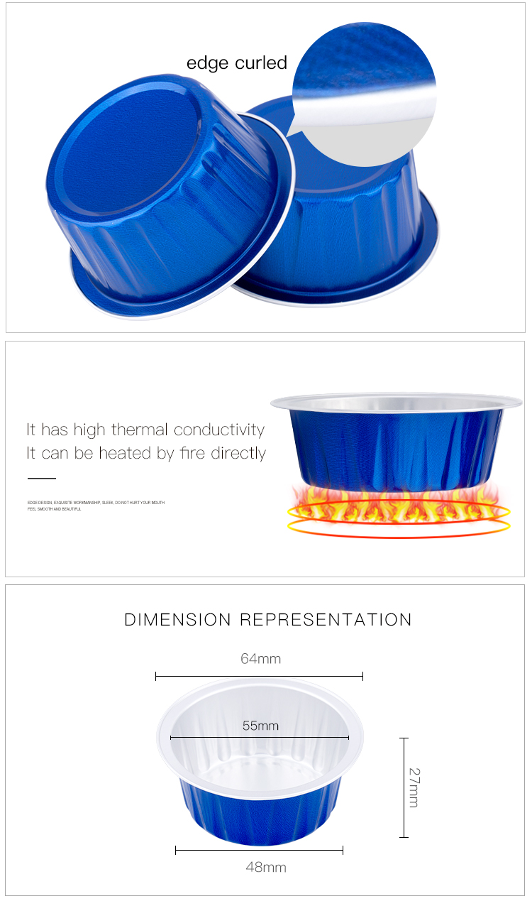 Ce récipient en papier d'aluminium est généralement utilisé dans la production de pudding au caramel et sa capacité est adaptée au pudding au caramel. Et il peut résister au feu léger, ou il peut être chauffé au four à micro-ondes. Ainsi, de plus en plus de magasins de desserts choisiront ce récipient en papier d'aluminium pour préparer du pudding au caramel.