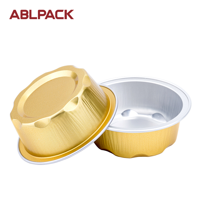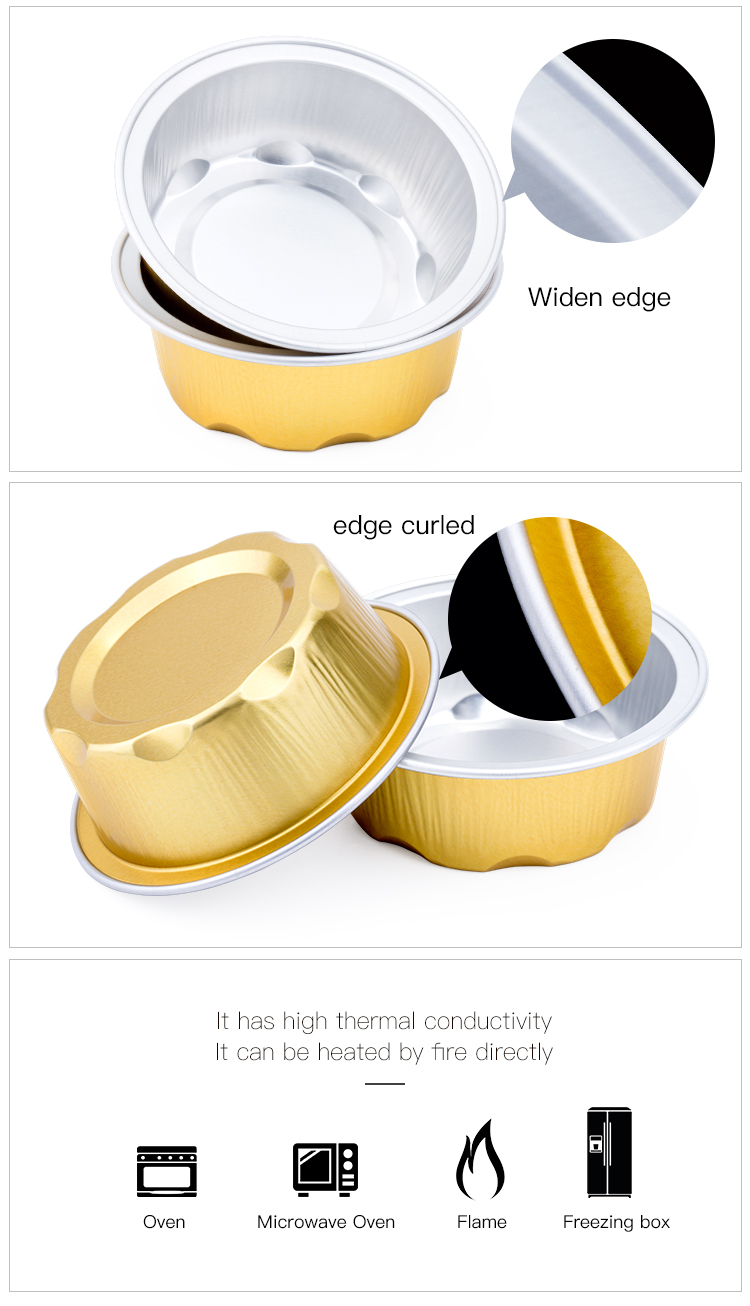 Ce récipient en papier d'aluminium est généralement utilisé dans la production de pudding au caramel et sa capacité est adaptée au pudding au caramel. Et il peut résister au feu léger, ou il peut être chauffé au four à micro-ondes. Ainsi, de plus en plus de magasins de desserts choisiront ce récipient en papier d'aluminium pour préparer du pudding au caramel.