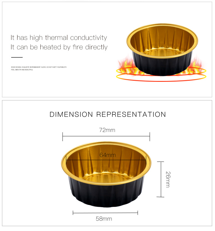 Ce récipient en aluminium en aluminium est couramment utilisé pour les gâteaux et les soupes. Il peut résister au chauffage avec une flamme ouverte, ou il peut être chauffé dans un micro-ondes de four.