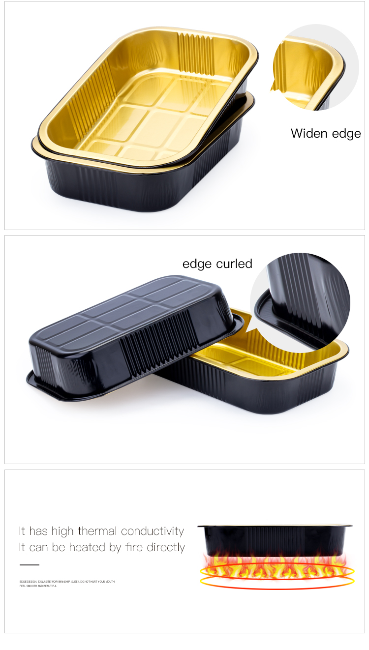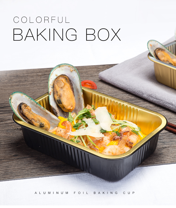 Ce récipient en aluminium est souvent utilisé pour les gâteaux et autres gourmandises. Il peut résister à la chaleur dans une flamme nue ou au micro-ondes. En tant que boîte à lunch à emporter, sa fonction et son apparence sont très bonnes.