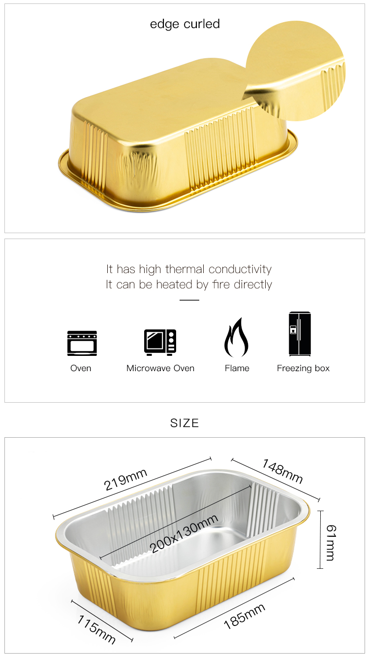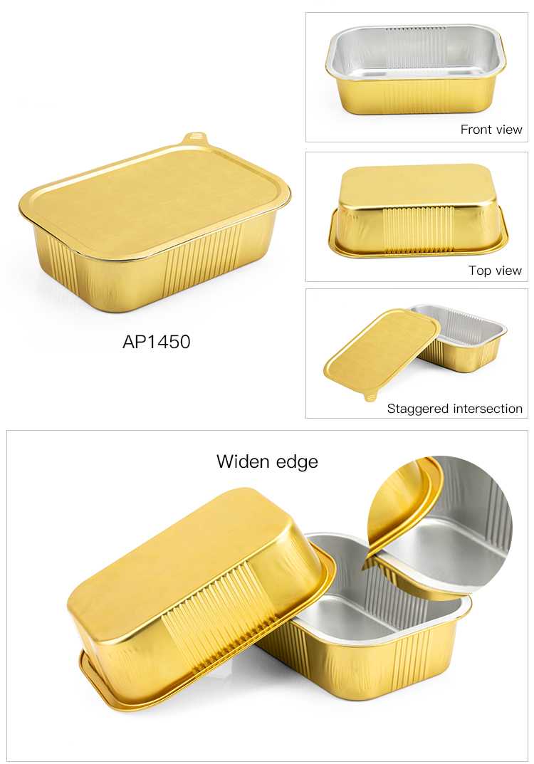 Ce récipient en aluminium est souvent utilisé pour les gâteaux et autres gourmandises. Il peut résister à la chaleur dans une flamme nue ou au micro-ondes. En tant que boîte à lunch à emporter, sa fonction et son apparence sont très bonnes. Récipient en aluminium le plus scellable, il peut augmenter le temps de conservation des aliments et peut également être utilisé pour le chauffage et la stérilisation. Il s’agit actuellement du contenant d’emballage à emporter le plus populaire.