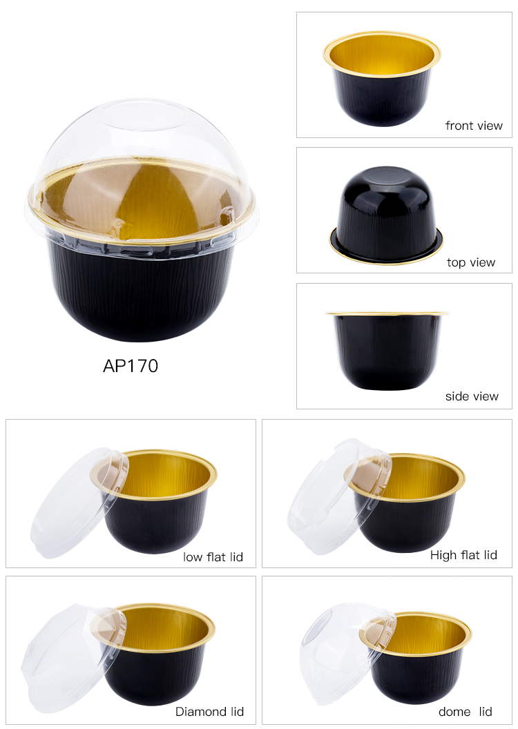 Fournisseur de moules à pâtisserie en aluminium jetables de haute qualité en Chine - ABLPACK Moules à pâtisserie en papier d'aluminium coloré de 170 ML/ 5,7 OZ avec couvercle en diamant - Détail de cuisson ABL :