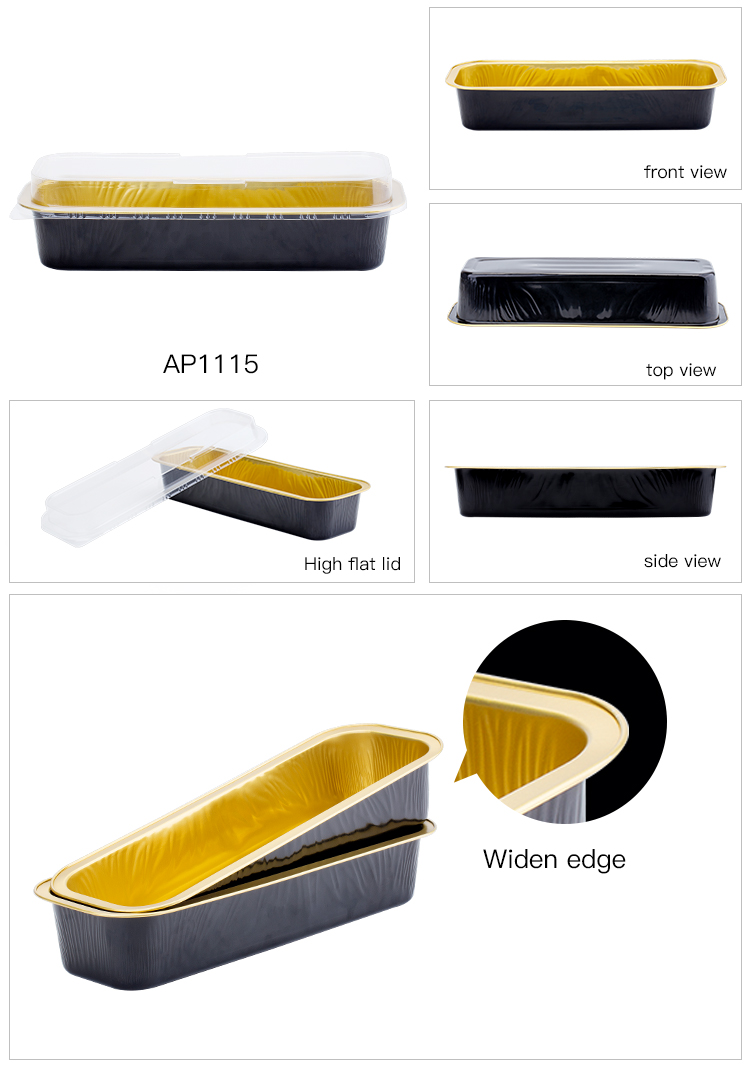 Chine Fabricants de plateaux en feuille jetables de haute qualité - Affectement ABLACK 1115 ml / 37 Ozlong Shape Rectangular Forme en aluminium Poule de pâtisserie avec couvercle de compagnie élevé - ABL Baking Detail: