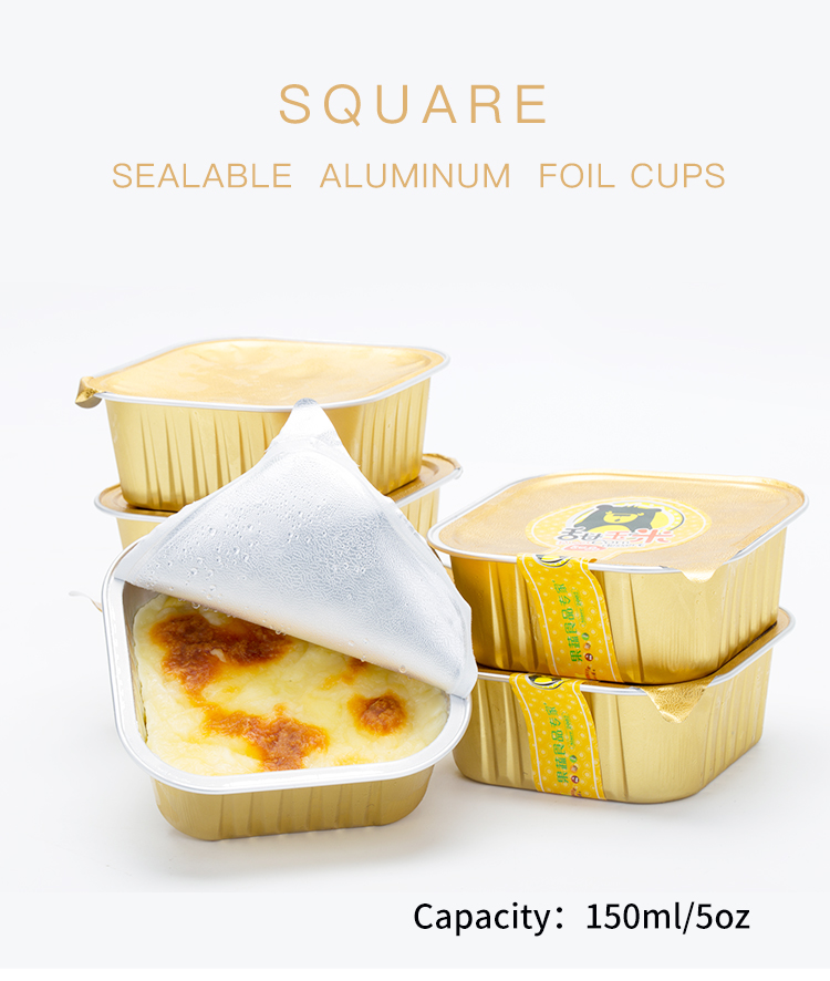 Ce récipient en papier d'aluminium est généralement utilisé dans la production de pudding au caramel et sa capacité est adaptée au pudding au caramel. Et il peut résister au feu léger, ou il peut être chauffé au four à micro-ondes. Ainsi, de plus en plus de magasins de desserts choisiront ce récipient en papier d'aluminium pour préparer du pudding au caramel.